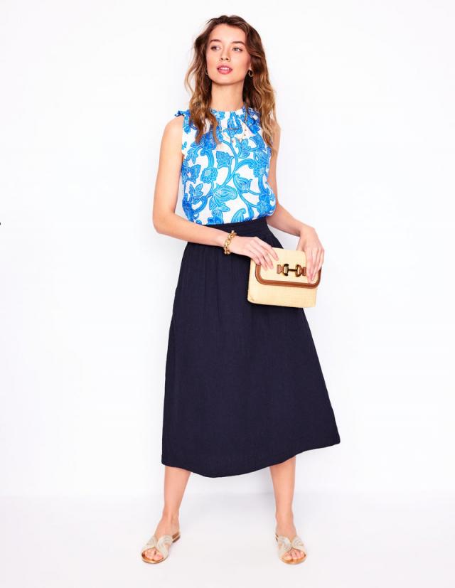 Boden Skirts | WOMEN Double cloth Smocked Skirt Navy
