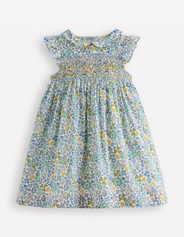 Our Adeline dress has hand-smocked detailing on the front framed by frilled shoulders. Oh and did we mention the Peter Pan collar and buttons at the backless – Designed to fall above the knee – Back button placket opening – Main 100% cotton, Lining 100% cotton – Machine washable G5123-IVO