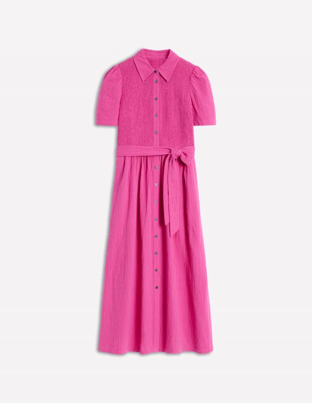 Come summer, we’re in favour of a spot of smocking; that’s where the Amber dress comes in. Cut from double cloth, it’s shaped with a flowing skirt, puffy sleeves and a smocked bodice. Oh, and pockets Of course we didn’t forget those.less – Model is 5’10 wearing a size 8R – 100% cotton – Machine washable – Fit and flare – For a flattering shape – Designed to fall at mid-calf – Side seam pockets D1160-PNK