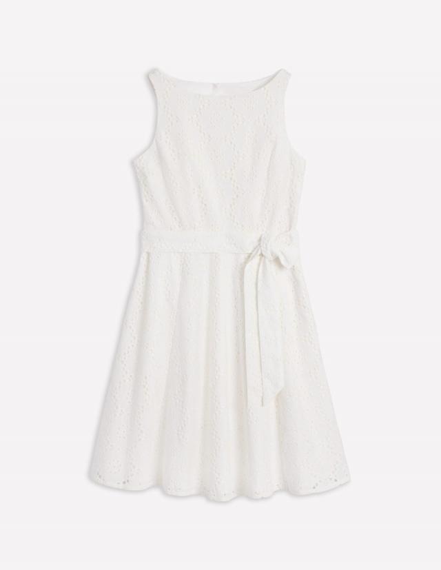 This linen dress is an easy style that can easily be dressed up or down. It’s cut to a sleeveless silhouette with side pockets and a self-tie belt.- Model is 5’11 wearing a size 6R – WHT: outer 100% cotton, bodice lining 100% cotton, embroidery 100% cotton – Machine washable – Fit and flare – For a flattering shape – Designed to fall above the knee – Side pockets – Lined bodice – Side zip – Keyhole and button fastening at back neck D1303-WHT