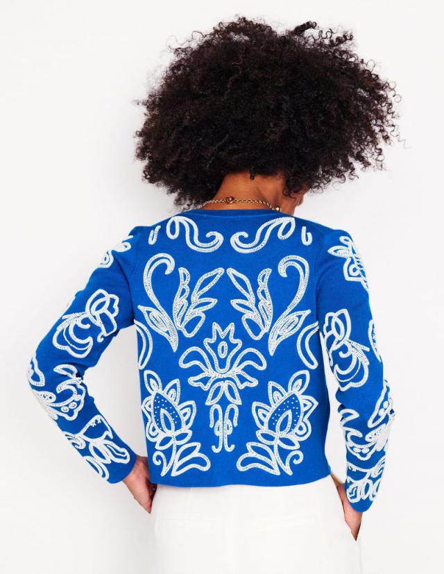 There’s no denying we love a little embellishment, but we’ve outdone ourselves with this cardigan. Spun from cotton, it’s adorned in intricate beadwork throughout.less – Model is 5’9 wearing a size 6R – 80% cotton 17% polyamide 3% elastane – PST: 80% cotton 13% polyamide 7% elastane – Hand wash only – Straight – Regular easy shape but not too tight – Designed to fall at the natural waist K1044-BLU