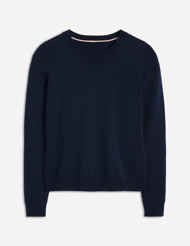 Some things are just classic for a reason. Enter: our Emilia crew-neck jumper. Spun from soft cotton, it’s a basic that’s anything but.- Model is 5’9 wearing a size XS – 80% cotton 17% polyamide 3% elastane – MUL: 70% cotton 30% polyester – Machine washable – Straight – Regular easy shape but not too tight – Designed to fall between the waist and hip K1034-NAV