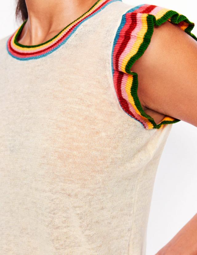 Too warm for a jumper, too cool for a T-shirt Oh the British summer. We have given the classic tank a glow up by crafting it from 100% linen with frivolous frills just for fun.less – Model is 5’10 wearing a size S – 100% linen – Machine washable – Straight – Regular easy shape but not too tight – Designed to fall between the waist and hip K1087-IVO