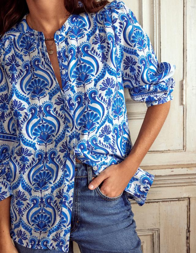 Boden Shirts & Blouses | WOMEN Alicia Linen Top Blue, Ornamental Floral