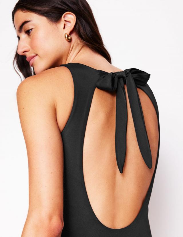 This slash neck tie swimsuit is speaks to active beach days and gives coverage in all the right places. The cut works perfectly as a backdrop for fun prints.less – Model is 5’9 wearing a size 6 – Main 80% polyamide 20% elastane, Cup 100% polyurethane, Lining 100% polyester – Machine washable – Lightly padded fixed cups for a smooth shape – This fabric passes testing to UPF50+, protection is only provided on areas covered by fabric, you should still wear SPF sunscreen. Protection may also be reduced when wet or stretched S0437-BLK