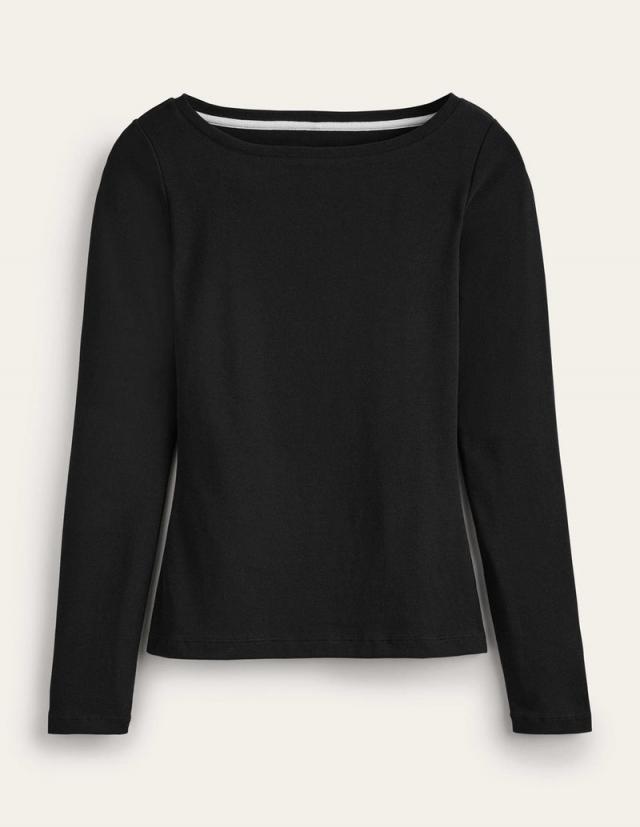 This stretch-cotton top has a soft ribbed finish that fits your body just right. The long sleeves make it a staple layer for this season and beyond.- Model is 5’9 wearing a size XS – 96% cotton 4% elastane – Machine washable – Fitted shape – Length finishes at mid hip – Full length sleeves T1478-BLK