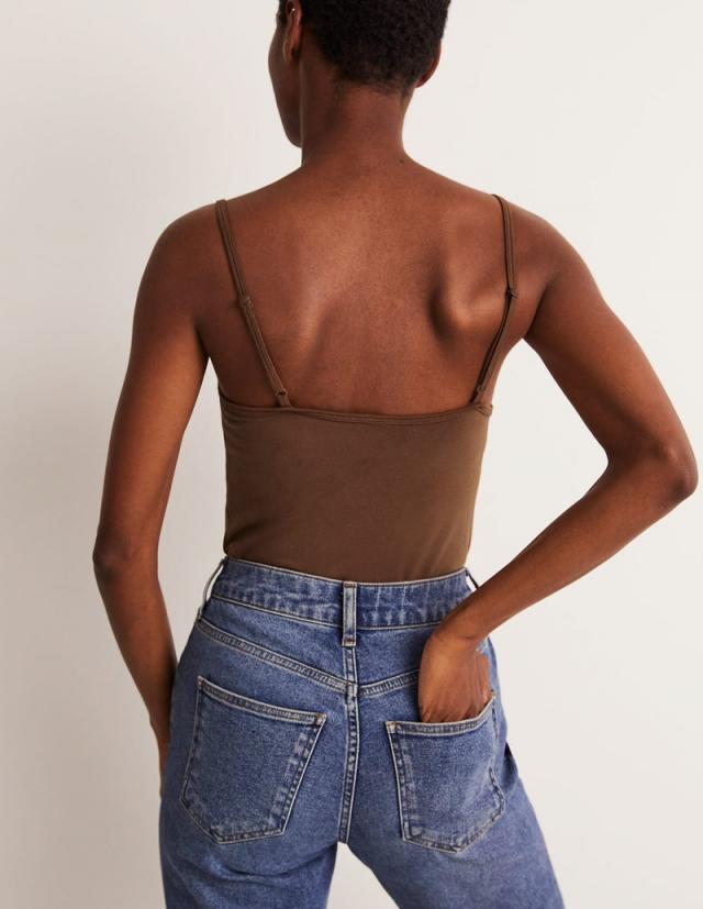 A Boden Basics essential, this versatile cami is made from a supersoft cotton-modal blend. Slimcut for a flattering fit, it’s perfect for layering.- 48% cotton 48% TENCEL Modal 4% elastane – Machine washable – Fitted shape – Length finishes at low hip – Sleeveless – Soft jersey with stretch – This garment contains TENCEL fibers. TENCEL is a trademark of Lenzing AG – Adjustable strap WO064-BRN