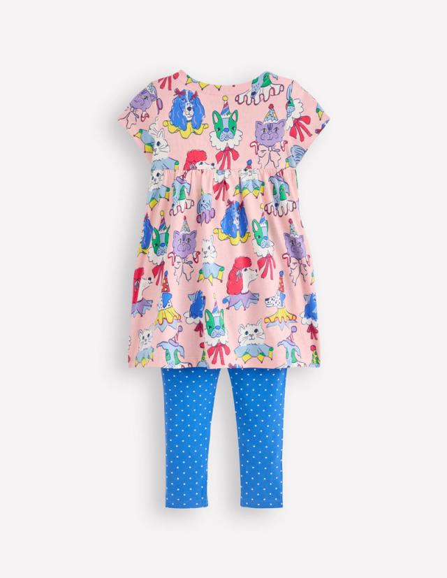 Boden Tunics | GIRLS Short-sleeved print tunic set Chalk Pink Parade Pets